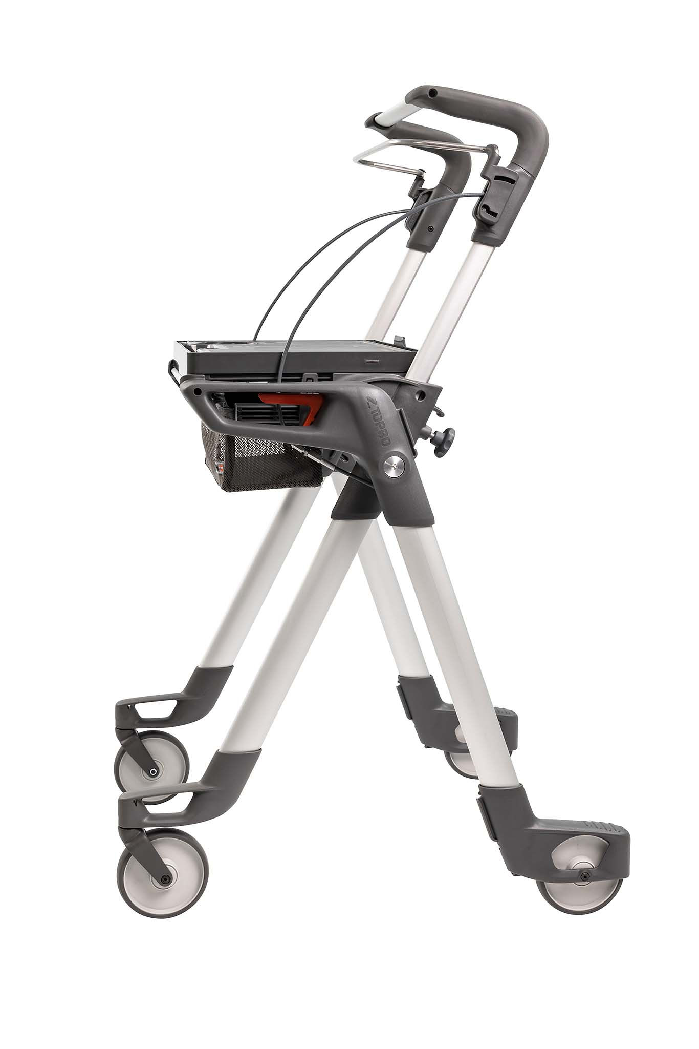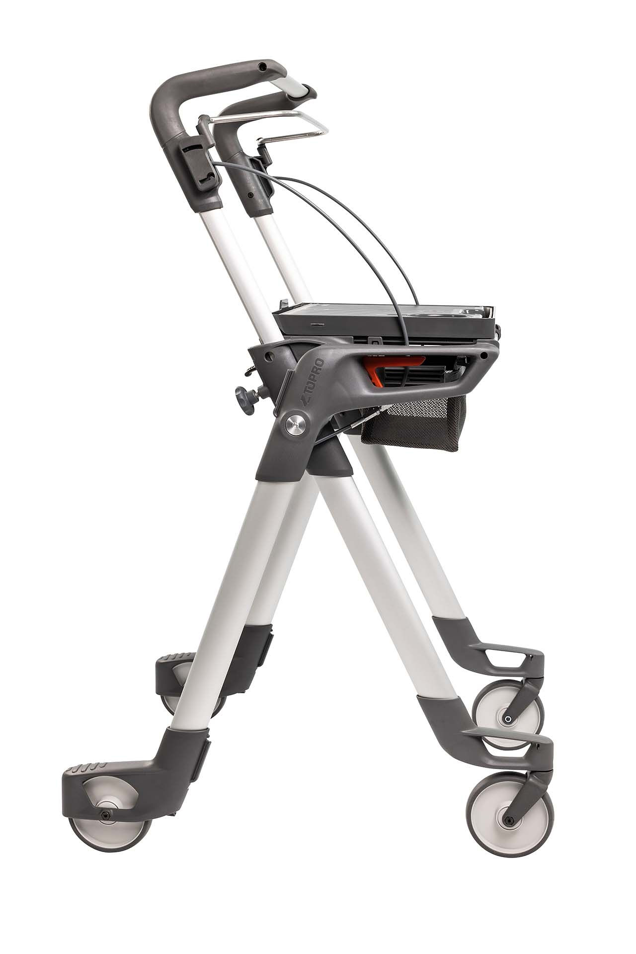 Der TOPRO Hestia lässt sich schnell und einfach kompakt zusammenklappen, wobei das Tablett gleichzeitig sicher verstaut wird. Auch zusammengeklappt steht er selbstständig.